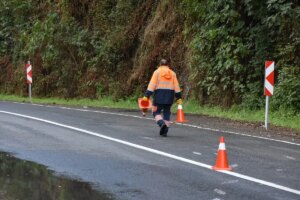 Sera Gölü yolunda toprak kayması nedeniyle ulaşım tek şeritten sağlanıyor, temizlik çalışmaları devam ediyor.